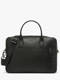 This document holder from the Flèche line, made of textured leather, combines elegance and functionality. It features a telescopic handle pass-through, a front and back pocket for easy storage, and can be carried by hand or with a shoulder strap. Inside, two simple pockets, a quick-access pocket, and a reinforced compartment for a 15"" laptop provide optimal organization.